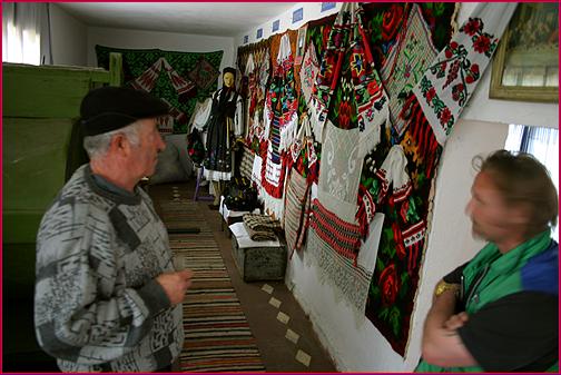 Achim Emilian (links) ... im Gespräch mit Günther Joos. Achim Eilian ist zudem auch Autor mehrerer Broschüren, die sich dem Thema "Etnografie si folclor din Tara Motilor" widmen. Natürlich kann der Besucher die aufgelegten Exemplare hier im Museum auch einsehen. Eine weitere Broschüre zu diesem Thema ist in Arbeit. |