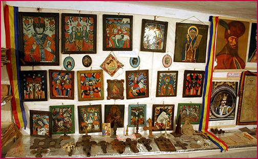Alte Ikonen (Hinterglasmalerei) ... ... und kirchliche Ausstellungsstücke finden ebenfalls ihren Platz in der umfassenden Sammlung des Museums. Eine Übersicht weiterer ethnografischer und anderer Museen innerhalb des Apuseni-Berglandes findet sich HIER! |