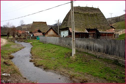 Alte, mit Stroh gedeckte Stallungen ... in Nadastie. Das Dorf gehört zur Gemeinde Almasu Mare und befindet sich auf halben Weg zwischen Cheile Cibului und Alamsu Mare. Im Dorf Cheile Cibului entsteht momentan ein neues Kloster (Manastirea Buna Vestire). Die Neugründung orientiert sich an einen historischen Platz, an dem es urkundliche Verweise auf ein erstes Klosteranwesen (oder eine Mönchsklause) aus dem Jahre 1211 gibt. |