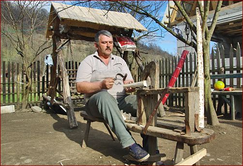 ... in das Sortiment, welches Belei Nicolae auf Märkten und Volksfesten zum Kauf anbietet. Natürlich erledigt er auch Auftragsarbeiten. Das Holzhandwerk hat Tradition in Nicolaes Familie, denn schon der Großvater übertrug das Handwerk auf den Vater und dieser wiederum auf seinen Sohn. Allerdings übt der gelernte Elektriker Nicolae das Holzhandwerk nur nebenberuflich aus. |