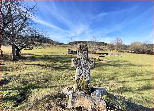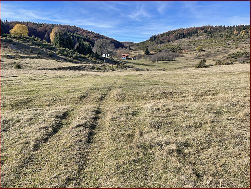 ... über das hier beginnende Plateau bei dem Streudorf Harasti befindet sich ein weiteres Steinkreuz. Das hiesige Streudorf ist weitgehend verlassen und ich habe hier Fundamente von über 15 Anwesen ausmachen können. Im Streudorf Poieni wohnen noch einige Familien ganzjährig und natürlich werden die Hochweideflächen hier über den Sommer von den Schafherden genutzt. |