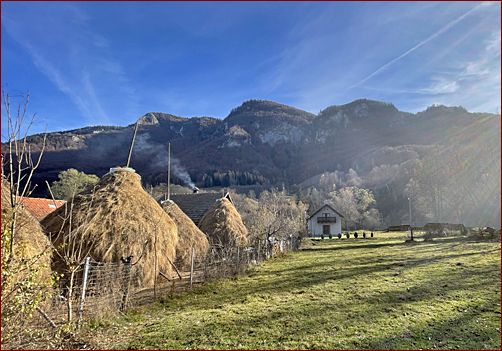 ... erreichte ich die Häuser nahe dem Ausgangspunkt der Wanderung bei Cascada Pisoaia nach ca. 6 Stunden. Viele Höfe haben schon ihre Holzöfen angeheizt und auch für mich ist es an der Zeit, sich eine Unterkunft in einer der zahlreichen Pensionen in der Valea Ariesul Mic zu suchen. Abgesehen von einigen wenigen Luxus-Anbietern sind die Preise der meisten Pensionen hier sehr moderat. Da viele Pensionen erst in den zurückliegenden Jahren eröffnet wurden, ist der Standard hier äußerst gut! |