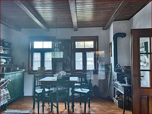 ... von Casa Memoriala "Preot Iosif Trifa". So man auf dem Grundstück eine Person antrifft, wird das Gebäude zur Besichtigung problemlos geöffnet. Ansonsten muss sich der Besucher mit einem Blick durch die Fenster des Gebäudes begnügen. Hier ein Blick in die original erhaltene Küche des Pfarrhauses. |