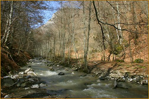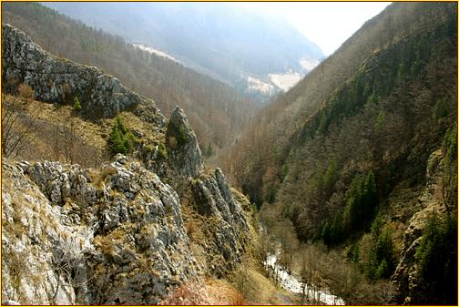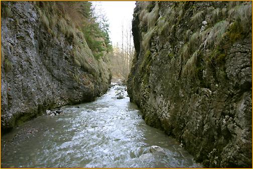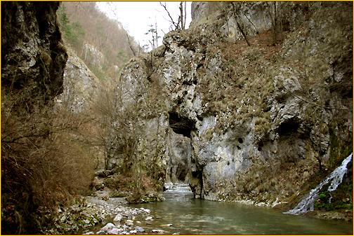 Cheile Geogelului Nur im oberen Abschnitt, nahe der Streusiedlung Dupa Deal, wird die Schlucht zu einer engen Passage. Während des Anmarsches muss der Bach mehrmals gefurtet werden, was in den Sommermonaten kein Problem darstellt. |