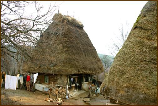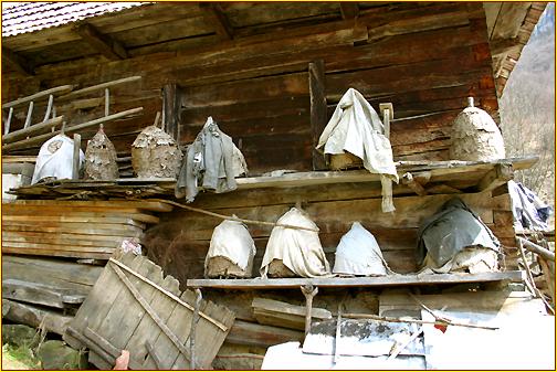 Blick ins Detail ... auf die alten Bienenkörbe des isolierten Gehöftes im Valea Bradestilor. |