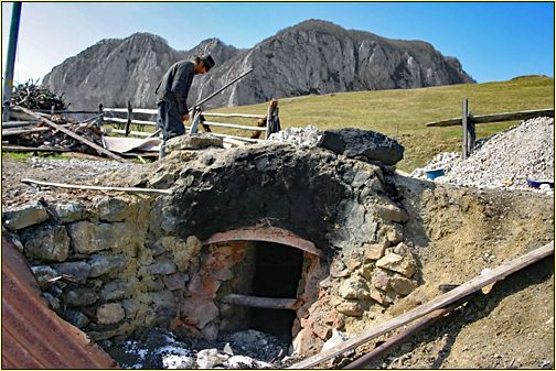 Noch vor einigen Jahren wurden hier einige kleine Kalkbrennöfen saisonal betrieben. Wer dieser schnell schwindenden Handwerkskultur noch beiwohnen möchte, der sollte sein Glück in den Muntii Codru Moma in Izbuc versuchen. Im Frühjahr 2025 wurden dort noch große Brennöfen für eine neue Bestückung mit Brennholz und Kalksteinen vorbereitet. |