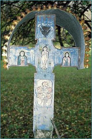 Grabkreuze im oberen Valea Fizesti Kurz nach der Pestera Mielului steigt man in das obere Fizesti-Tal ein. Hier wohnen und leben die Bergbauern ganzjährig, wofür auch die alten Garbkreuze Zeugnis ablegen. |