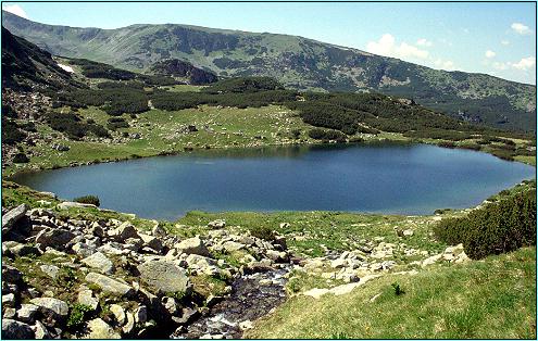 Lacul Câlcescu Die Gegend um den grössten Bergsee des Muntii Parâng ist eine Reservation. Die Gegend ist wenig bewandert, da die meisten Tagesausflügler aus Richtung Petrosani (Cabana I.E.F.S.) kommen und selten die Wanderung mit grossem Gepäck bis hier her unternehmen. Die alte Markierung -Rotes Band- am unteren Ufer des Lacul Câlcescu führt in die andere Richtung weiter bergab ins Tal des Lotru nach Obârsia Lotrului. Ein Teil des Weges ist teils durch alte Bergkiefern ziemlich verwachsen. |