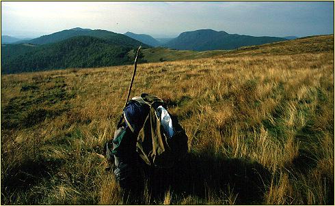 Es ist so weit September 2003 - dem Virus "Muntii vâlcanicus" wird endlich der Kampf angesagt und meine Wanderung begann in dem Bergdorf Curpen. Es war ein Sonnabend und es regnete. Nicht einmal ein Forstarbeiter würde heute oben in den Bergen sein und auch die Hirten sind hier schon alle zu Tal gekommen. Aber dem Regen wegen das Virus länger in sich brüten lassen? Nix da und los ging´s. Um 9:30 Uhr in der Frühe verliess ich Curpen und eine Stunde später hatte ich auch das letzte Dorf Vaidei hinter mich gelassen. Fortan also vollkommen allein, alle Sinne auf die Natur fixiert. Gegen 16 Uhr war ich nahe dem Vf. lui Frate und errichtete auf ca. 1400 m im dichten Nebel das Zelt nahe einer Quelle. |