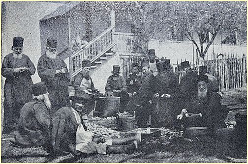 Ein Auszug und Foto aus: "Aus Rumänien / II. Band / Raymund Netzhammer / Verlagsanstalt Benziger & Co.U.G / Schweiz / 1913" "... Kloster Cheia ... der Staretz ... sprach uns von seinen Schwierigkeiten und Sorgen in dem so unendlich weit von der Welt abgelegenen Kloster. ... Es kam mir vor, wie wenn ich noch keinen schöneren Morgen erlebt hätte. Das Bild war aber auch von überwältigender Majestät in der kolossalen Gebirgsnatur und von zartester Feinheit in der malerischen Klosteranlage. Was ich immer wieder bewundern mußte, war der tiefgrüne und gleichmäßig geaßte Rasen, der schöner als der kostbarste Teppich die ganze Hofflur bedeckt. Wie stimmungsvoll und reich sich von diesem Grün das Weiß der Kirche, das Braun der Holzveranden, das Grau der Schindeldächer und das Dunkel der Tannen abheben, welche bei der Kirche stehen und den kräftig fließenden Klosterbrunnen beschatten! Ich habe die berühmtesten rumänischen Klöster gesehen, aber keines hat mir einen so tiefen und so lieblichen Eindruck gemacht wie das Kloster Cheia. ..." |