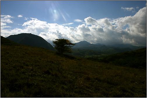 Vf. Cucurbata Mare (Vf. Bihor) Er ist mit seinen 1848 Metern die höchste Erhebung des Bihor-Gebirges. Der letzte Abend meiner Apuseni-Reise nahte und hatte mir vorgenommen, für diese Nacht ein besonders schönen Platz für´s Zeltlager zu finden. Auf der Abfahrt Richtung Baita besuchte ich mehrere Abzweigungen und erst der vierte Versuch führte zum Glück! Von meinem Zeltplatz aus hatte ich eine der wohl schönsten Aussichten auf den höchsten Berg des Bihor-Gebirges, den Vf. Curcubata Mare (Vf. Bihor / 1848 Meter). Und zur gegenüber liegenden Seite ging derweil die Sonne unter ... |