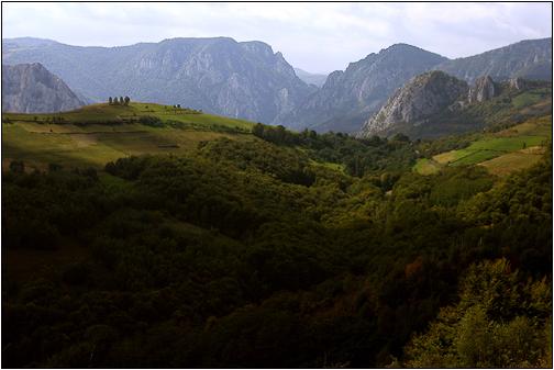 Auf dem Plateau ... ... Richtung Ramet (Muntii Trascaului), nahe Crucea Mutului. Im Hintergrund sieht man den Felsdurchbruch von Cheile Rametului. Weitere Infos zur Cheile Rametului: 1 u. 2 Kartentipp: Muntii