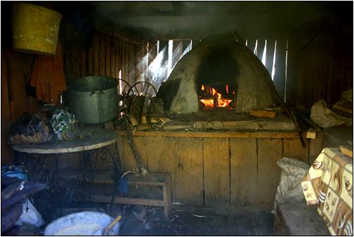 Der Backofen ... ... ist angefeuert! Bereits im oberen Tal von Poiana Horea wurde ich neugierig auf einen kleinen Schuppen, aus dem Rauch aufstieg. Es ist der Hof von Familie Mates Nicolae, Nr. 208 und somit waren auch meine ersten Kontakte zu den hier lebenden Menschen hergestellt. Hier durfte ich am Abend dann auch mein Zelt aufschlagen und bekam zudem ein frisch gebackenes Brot geschenkt! |