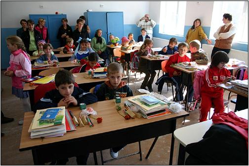 Einschulung ... ... in Poiana Horea. Auf der Suche nach dem Pfarrer des Ortes führte der Weg an der Schule vorbei, denn hier arbeitet seine Frau als Lehrerin. |
