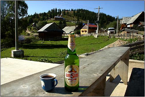 Urlaub! Während für die neu eingeschulten Kinder jetzt -laut dakischer Wurzeln- die Qualen irdischen Lebens nun ihren Lauf nehmen :-))) , gewähre ich mir im Zentrum des Ortes einen Kaffe und ein "bere Ursus" - bei herrlichem Sonnenschein, versteht sich! Auch hier ist das Leben der Menschen beinahe vollständig vom Holz bestimmt. Allein in diesem kleinen Dorf gibt es an die 30 Gatter (Sägewerke). Holz gibt es rundum in den riesigen Wäldern reichlich, zudem Stürme im letzten und diesem Jahr grosse Schäden verursacht haben. Es muss also ohnehin viel Holz geborgen werden. |