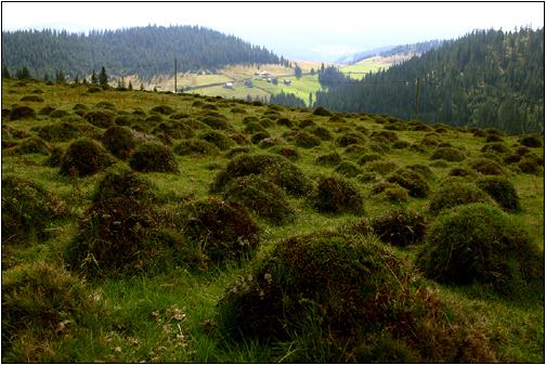 Am Pass (Saua Ursoaia / Ursoaia-Sattel) ... auf ca. 1300 Meter zwischen Matisesti und Poiana Horea nahe Dealul Stauin (1380 m). Wer mit einem Allradfahrzeug auf der alten -59- unterwegs ist, findet über einen am Pass nach Westen abzweigenden Weg schöne Zeltgelegenheiten (2-3 km). Auch ich übernachtete im Zelt bei Poiana Marsoaia nahe dem Vf. Clujului (1399 m). Hier gibt es auch einige Sommerwirtschaftshütten. Milch und frischer Käse garantiert! |