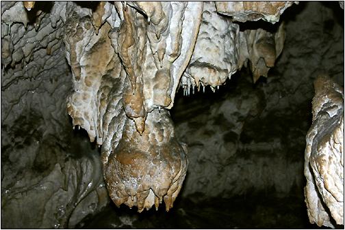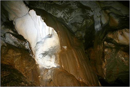 Charakteristisch ... ... für die Pestera Alunului sind die schönen Formationen braun-weisser Färbung. Im nahen Tal des Paraul Ponor besuchte ich noch die kleine Pestera Izbuc. |