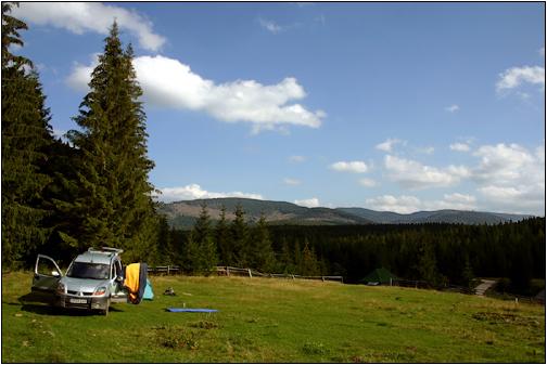 Schöner Zeltplatz ... ... nahe Ic. Ponor. Direkt hinter der kleinen Forststation im Tal des Somesul Cald, befindet sich - ca. 8 Meter über dem Talgrund - eine malerische Zeltwiese (die als solche provisorisch ausgeschildert ist). Für mich war das wie "Liebe auf dem ersten Blick" und so genoss ich hier einen schönen Ausklang des Tages. Es lohnt durchaus, hier über mehrere Tage das Lager aufzuschlagen, schliesslich sind die "Cheile Somesului Cald" nicht weit entfernt! |