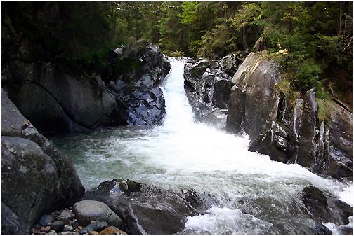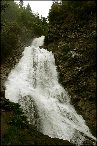 Cascada Rachitele Ich hatte Glück, die Kaskade führte - Dank vorhergehender Regenfälle - gut Wasser. Im Zetrum von Rachitele zweigt ein Fahrweg Richtung Cascada Rachitele ab (ca. 6 km). Besucher, die in einer der im oberen Tal gelegenen Pensionen übernachten wollen, können den Fahrweg mit dem Auto passieren. |