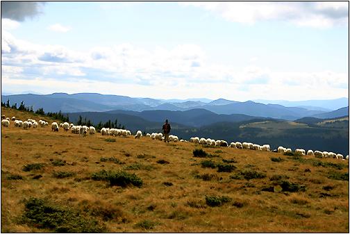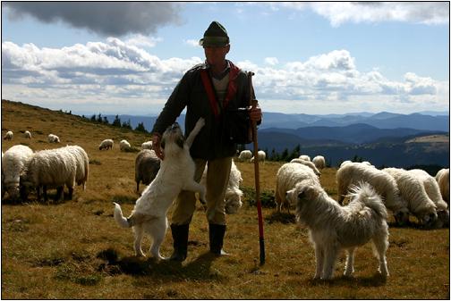 Hirten bei Vf. Vladeasa Zum Glück gibt es sie noch! Diese Hirten kommen aus dem nahen Bergdorf Rogojel und betreuen hier an die 500 Schafe. |