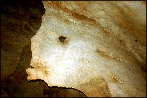 Steinerner Fisch ... ... im hinteren Bereich der Höhle. Im Endabschnitt verringert sich die Deckenhöhe beträchtlich bis unter 1 m. Dann steigt das Niveau noch einmal kurz an. Ein Deckeneinsturz, gekennzeichnet von massiven Bruchgestein, bildet das passierbarre Ende der Höhle. An dieser Stelle will ich mich nochmals für die gemeinsame Begehung bei Alex Györfi, Csabi Szabo und Kokszi Dobos bedanken! |