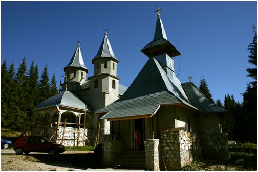 Orthodoxe Klosterkirche ... bei Stana de Valea. Die Strasse von Lacul Lesu hinüber nach Stana de Vale ist zwar eine "einst" befestigte, heute aber in sehr schlechten Zustand. Autos verkehren hier dennoch. Auf den letzten Kilometern vor Stana de Vale nahm ich noch zwei alte Forstmänner mit. Die erzählten mir, dass hier grosse Teile des Waldes, ca. 400 ha, jetzt der griechisch-katholischen Kirche gehören. ... Stana de Vale ist eigentlich ein kleines Wintersportzentrum. Es gibt ein sehr gutes Hotel, aber ansich hab ich hier immer den Eindruck, die Menschen laufen eher gelangweilt umher. |
