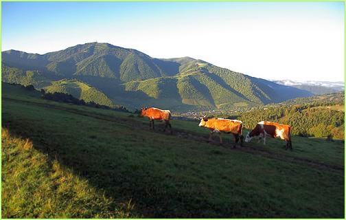 Ein typisches Bild ... stellen die weit verstreuten Berghöfe im Norden der Muntii Bargaului dar (im Bild zu sehen : Höfe nahe Vf. Dragan). Momentan laufen Bestrebungen, Teile des sich über 1500 km² erstreckenden Gebirges als Naturschutzgebiet einzugliedern.