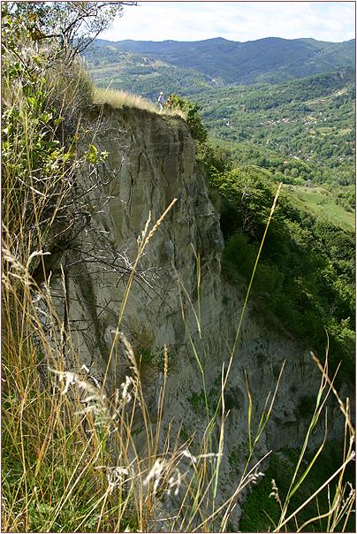 Ausblicke ... zwischen zwei riesige Flysch-Platten. Über dem in der Bildmitte zu sehenden Bergkamm kann man von Braesti her bequem aufsteigen. Wandermarkierungen gibt es hier natürlich keine. |