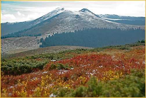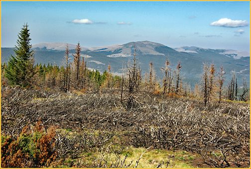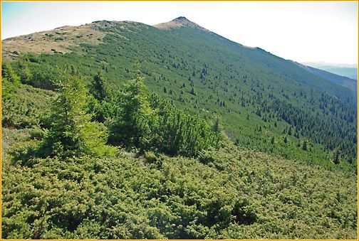 ... bis zum Hauptkamm. Hier machen wir einige Male halt und essen uns an den üppigen Blaubeerbeständen satt. In der Ferne erhebt sich bereits der Stanisoara-Bergrücken (1971 m). |