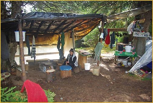 ... stossen wir auf ein Camp von Pilz.- und Beerensammlern. Sie leben hier den gesamten Sommer und Herbst über in ihren improvisierten Unterkünften. |