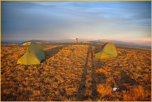 ... wie Hans sein Zelt auf dem 2178 m hohen Gipfel der Piatra Alba errichtet! ... |