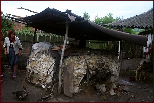 Besuch bei Familie Constantin Wir werden Podisul Mehedinti etwas untreu und verlassen das Gebiet für kurze Zeit gen Ost, dem sich die Getic-Platte anschliesst. Ziel unserer Begierde ist der Töpfermeister Danile Constantin, von dessen Töpferkunst wir uns bereits an einer Stana auf Poiana Beletina überzeugen konnten. Dort bekamen wir den Hinweis, dass jener Töpfermeister nahe Comuna Glogova wohnt. Unsere Suche entlang der Strassendörfer war nicht ganz einfach, aber schliesslich bekamen wir vor Ort heraus, dass jener Mann im Dorf Olteanu (Com. Glogova) lebt. Aber selbst dort mussten wir erfahren, dass nicht jeder im Dorf jenen Töpfermeister kennt. ... Leider war bei unserem Besuch nur Elena, die Ehefrau von Herrn Constantin zugegen. Im Bild zu sehen: Der Brennofen, welcher aus runden Flusssteinen besteht, die durch ein Metallgeflecht stabilisiert und von Innen und Aussen mit einer Lehmschicht überzogen sind. Nach der Befeuerung bleibt die Töpferware ganze zwei Tage im Brennofen. |