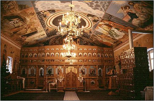 Die Malerei im Naos ist ebenfalls von einfacher Stilistik, entfaltet aber eine grosse Wirkung auf den Besucher. Der Altar der Kirche wurde vor 9 Jahren neu erbaut. |