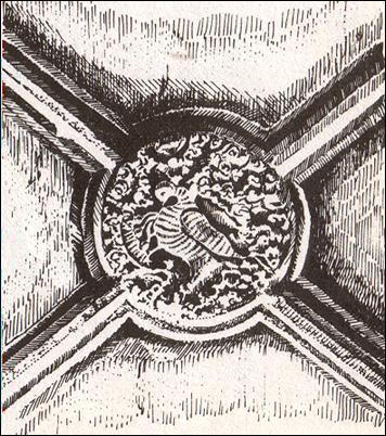 Schlussstein des Südseitenschiffs; Wappenschild mit Steinmetzzeichen |