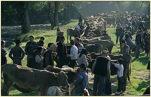 Jeden Montag in der zweiten Monatshälfte (also im Zeitraum vom 16.-31. des Monats) kann man den Bauernmarkt in Dragomiresti besuchen. Bereits in frühen Morgenstunden kommen Bauern und Händler mit Vieh und Waren aller Art "angereist". Etwa bis zur Mittagszeit kann man dort veweilen, um die Geschäftigkeit der Maramureser in sich aufzusaugen! |