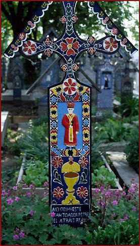cimitir = Friedhof ... vesel = lustig, fröhlich, froh, heiter ... Wie passen ausgerechnet diese Worte zusammen, wird sich jeder Europäer wohl fragen und es sind eben nur die Maramureser, jenes rumänische Völkchen einer hartnäckigen Kulturenclave, die darauf eine Antwort haben. Die Antwort freilich ist nicht ein Satz und auch kein Aufsatz, sondern Ausdruck einer allumfassenden Lebensweise, welche mit der Geburt ihren Anfang nimmt und mit dem Tod endet. Gleich welcher Altersphase findet sich der Maramureser stets begleitet von Sitten und Bräuchen, welche immer auch mit der rumänischen Orthodoxie und gar mancher Abergläubigkeit verknüpft scheinen. Hinzu kommt ein hier aussergewöhnlich vorherrschenes Potential an Ironie, welches wohl letztendlich ausschlaggebend für diese künstlerische "Evolution" und auch deren nachfolgende Akzeptanz sein mag. |