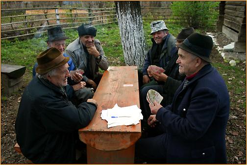 November 2004 Auch zu dieser kalten Jahreszeit lassen sich die alten Männer der Gemeinde nicht abhalten auf ein Kartenspiel im Freien, im sogenannten Biergarten, direkt an der Hauptstrasse im Zentrum gelegen. |