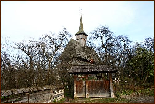Die alte Holzkirche aus dem Jahre 1722 besteht aus einer polygonalen Apsis, dem Naos mit halbzylindrischen Gewölbe und dem Pronaos mit flacher Decke, über welcher sich der kleine Glockenturm erhebt. Links neben dem Eingang zum Gelände der alten Holzkirche befindet sich das Anwesen des Holzkünstlers Vlad Dumitru. Ca. 100 Meter rechtsseits befindet sich die neue Kirche, welche in Steinbauweise errichtet wurde und der stark angewachsenen Gemeinde ausreichend Platz zu den Gottesdiensten bietet.