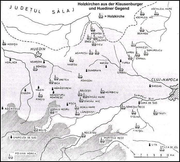 In den meisten Dörfern aus der Umgebung von Cluj / KLausenburg und Huedin gab es früher viele Holzkirchen; um 1900 waren es noch 44 im 17.-19. Jahrhundert errichtete Bauten.
